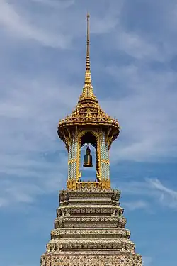 Bell tower (Thai: หอระฆัง; RTGS: ho rakhang) is one category of the Thai architectural structure in a wat for signaling the monks to do their praying ceremony.
