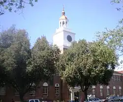 The school's main building is a replica of the old Pennsylvania State House, also known as Independence Hall, located in Philadelphia, Pennsylvania. Adjacent to the main building is St. Eleanor's Hall, a replica of the main library at the University of Virginia, designed by Thomas Jefferson. The main entry to St. Eleanor's Hall has 13 steps, representing the original Thirteen Colonies in the order they became states by ratifying the U.S. Constitution.