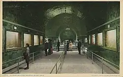 The aquarium basement served as a speakeasy during Prohibition[9] and later held large fish which no longer fit the Belle Isle Zoo's gallery tanks. Closed circuit television allowed remote viewing of these fish. The aquarium was slightly remodeled in the 1950s.