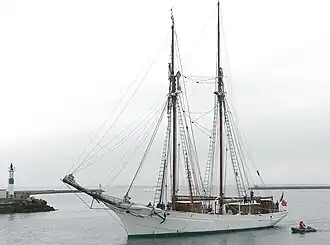Belle Poule is a French Navy schooner in service as a training vessel, and the fourth ship of that name in the French Navy. She was built in 1932 as a replica of a cod fishing vessel used off Iceland, as a training ship of the students of the École navale.[3] During the Second World War, Belle Poule sailed to the United Kingdom after the Fall of France and was used by the Free French Naval Forces, returning to Brest in 1945. The schooner as well as her sister ship Étoile are still used by the École Navale as training ships in European waters.