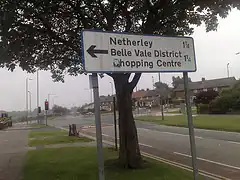 District signage erected by Liverpool City Council in 2005 did not include Belle Vale as a distinct district leaving the area in somewhat of a quandary. Signs were put up on Childwall Valley Road saying Gateacre (southbound towards the shopping centre and Netherley) and Childwall (northbound towards Childwall). The centre of Belle Vale effectively falls within the area identified as Gateacre by the signs, with Childwall deemed to begin north of a new school and health centre. The area's identity as Belle Vale is recognised by the names of various local amenities including the health centre, shopping centre, police station and fire station.