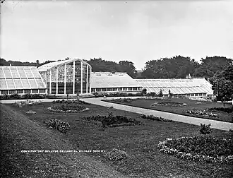 The 1901 Census of Ireland was carried out on the night of 31 March 1901, during which multiple houses were recorded within an area known as "Bellevue demesne".[2] Of these, the only house occupied by a La Touche, presumably Bellevue House itself, was that in which Mary La Touch, an unmarried 40 year old woman, was marked as 'head of family', co-occupying with her sister Charlotte La Touche, an unmarried 23 year old.[3] Mary and Charlotte were sisters of Peter La Touche, the owner of the house at that point.[1] Five female servants were recorded as also living in the house with them.[3] No other La Touche's were recorded as being at the house that evening.