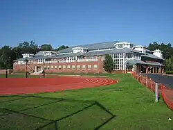 Today, Belmont Hill offers 16 interscholastic sports and 58 teams, and claims that "virtually all teachers are coaches."[25] The Jordan Athletic Center, opened in 2000, contains two basketball courts, a wrestling room, seven squash courts, a free weights and workout facility, and an Olympic-size hockey rink that converts into four tennis courts. The school also has three baseball fields, a grass soccer field, and two artificial turf fields used for football, lacrosse, and soccer.[26]