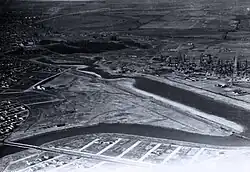 Belmont Park is in the foreground in this photo, with Naples Island is in the middle distance, and The Peninsula and the neighboring city of Seal Beach beyond, looking southeast. | |