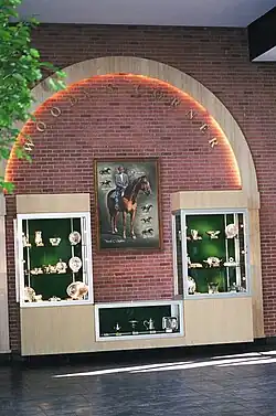 A long mural by Pierre Bellocq on the second floor of the clubhouse featuring the dominant jockeys, trainers and racing personalities celebrates the track's history.[13]