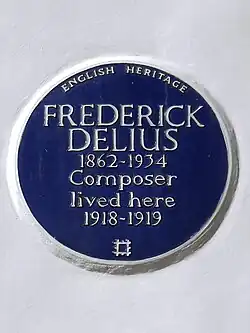 The area was laid out in the mid-nineteenth century as prosperous housing to provide for the expanding population of the capital. The Italianate stucco style resembled similar new neighbourhoods in Kensington. From 1855 the property developer Daniel Tidey directed the development of the street, described by Pevsner as "the most impressive stretch" notable for its paired palazzi with ionic porches.[2] It is built on the land of the former Belsize House estate from which it takes its name, along with various other streets in the vicinity.[3] Notable former residents included the composer Frederick Delius and the journalist Henry Noel Brailsford, both of whom are now commemorated with blue plaques.[4][5]