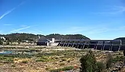 Belver Dam (Portuguese: Barragem de Belver) is a concrete gravity dam on the Tagus, where the river forms the border line between the Portuguese districts of Portalegre and Santarém. It is located in the municipality Gavião, in Portalegre District.