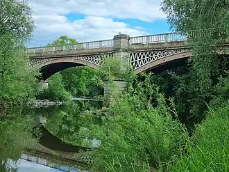 Belvidere Bridge is one of four on the River Severn made of cast iron from the Coalbrookdale foundry. The first was the Iron Bridge (the world's first major cast-iron bridge) in Coalbrookdale itself. The other three are all railway bridges, of which Belvidere was the earliest. It was followed by two largely identical bridges, the Victoria Bridge near Upper Arley (1862), and the Albert Edward Bridge (1864) near Coalbrookdale.[6]
