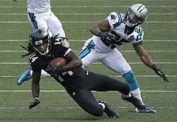 As a rookie, during the preseason, Benwikere won the starting nickel corner position on the Panther defense over veteran Charles Godfrey.[14] On his NFL debut on September 7, 2014, in Carolina's 20–14 win over the Tampa Bay Buccaneers, Benwikere had 4 tackles, 1 pass deflection, and a recovery of a forced fumble by teammate Luke Kuechly on Tampa running back Bobby Rainey.[15][16] Benwikere's fumble recovery enabled Carolina to run out the clock en route to their victory.[15] In a week 2 victory over the Detroit Lions, Benwikere allowed only 20% of his targets to catch a pass, had a pressure, and recorded a pass deflection that was nearly picked off by teammate, Star Lotulelei.[17] Through the first two weeks of the season, Pro Football Focus (PFF) rated Benwikere as the second best cornerback in the NFL, allowing a completion percentage of only 44.4% of passes thrown in his area.