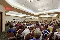 In late May, Carson won the presidential straw poll at the 2015 Southern Republican Leadership Conference, with 25.4% of the vote,[55] and in July he came first in a straw poll of the Washington, D.C. Republican Party, with 44%.[56] Carson also came in first in two consecutive annual polls from the Western Conservative Summit; in 2014, he won 22% of the vote, and in 2015, he won with 26% – 224 votes out of 871 total.[57][58]