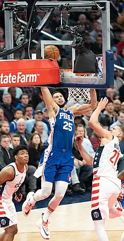 Benjamin David Simmons (born 20 July 1996) is an Australian professional basketball player who last played for the Los Angeles Clippers of the National Basketball Association (NBA). He played college basketball for one season with the LSU Tigers, after which he was named a consensus first-team All-American and the USBWA National Freshman of the Year. Simmons was selected with the first overall pick in the 2016 NBA draft by the Philadelphia 76ers. After sitting out a year due to an injured right foot, he was named the NBA Rookie of the Year in 2018 and was selected three times to the NBA All-Star Game. After a holdout from the 76ers following the 2020–21 season, Simmons was traded to the Brooklyn Nets. His contract was bought out by the Nets in February 2025, and Simmons subsequently signed with the Los Angeles Clippers.