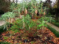 Bencomia is a genus of four rare plant species native to the Canary Islands, which grow as woody, branching shrubs with glossy, evergreen leaves and central, pendulous inflorescences with small flowers followed by densely packed, globular fruits. Mature heights range from 1 to 4 meters.