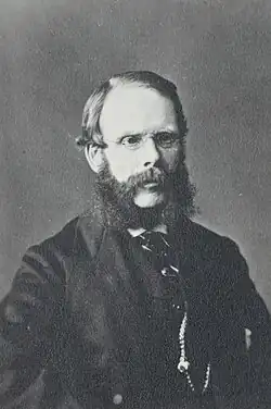 Herschel's brother Dugald Bromhead[50] (13 March 1823 – September 1901) arrived in Adelaide on the Grecian on 24 September 1849[51] and worked a farm on Goodwood Road. He worked as assistant to his brother in the Assay Office in 1852, helped found the Adelaide Philosophical Society in 1853 and in 1854 surveyed the route of the proposed Port Adelaide to Adelaide railway.[52] Herschel, while protective of his less able younger brother, despaired of his propensity to mix with social inferiors and his fondness for drink.[53] He married Anne Lea at Sturt on 7 March 1854. Their children included: