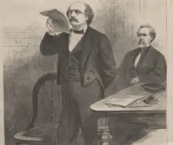 Although Butler's governance of New Orleans was popular in the North, where it was seen as a successful stand against recalcitrant secessionists, some of his actions, notably those against the foreign consuls, concerned Lincoln, who authorized his recall in December 1862.[72] Butler was replaced by Nathaniel P. Banks.[73] The necessity of taking sometimes radical actions and the support he received in Radical Republican circles drove Butler to change political allegiance, and he joined the Republican Party. He also sought revenge against the more moderate Secretary of State Seward, whom he believed to be responsible for his eventual recall.[74]