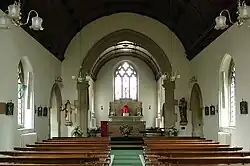 The church was built in 1914 by Arthur Young in the Gothic style and is Grade II listed [ 2] as a building of special architectural or historic interest. It was opened in January 1915. The Lady chapel was added in 1916 and the porch in 1934. The 45-foot tall tower, surmounted by a 35-foot copper spire was added in 1939. The church was consecrated in 1940[ 3] by the auxiliary bishop of Westminster, Edward Myers.