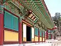 Another unusual heritage is the stele of Ven. Jajeong Gukjon (慈淨國尊: 1240–1327) (Tangible Cultural Heritage of Chungcheongbukdo No. 79). A memorial to this monk who had risen to the rank of National Preceptor was inscribed on the natural stone cliff by royal decree of King Chunghye. Seonhuigung Wondang, a structure located behind the Main Buddha Hall, is the prayer shrine for Yeongbin of the Yi Clan, the mother of Crown Prince Sado and a royal concubine of King Yeongjo. Having the same name as her shrine in the Chilgung Shrine Complex (where ancestral tablets of seven royal concubines are kept), it is unusual a prayer shrine for a royal concubine be located in a temple.
