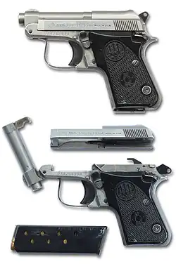 The Beretta 950 is a semi-automatic pistol designed and manufactured by Beretta since 1952. It builds on a long line of small and compact pocket pistols manufactured by Beretta for self-defense. It was intended to be a very simple and reliable pocket pistol.[1]