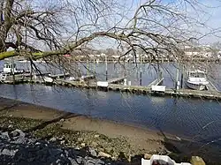 Starting in the 1950s, a series of suburban waterfront communities were being rapidly developed in Southeast Brooklyn, including in present-day Bergen Beach, Canarsie, and Mill Basin. By 1963, a new 69th Precinct building for the New York City Police Department, as well as the South Shore High School in Canarsie, had to be constructed to accommodate the growing population.[44] The neighborhood had some of the most expensive houses in Brooklyn by 1972.[45] Bergen Beach only became popular as a suburban neighborhood toward the end of the 20th century.[21] Further development did not come until the 1980s, when more of the marsh was filled in.[11] From 1983 to 1988, prices of residential lots in Bergen Beach increased fourfold. At the time, one developer was constructing two- and three-bedroom apartments with prices ranging between $115,000 and $243,500.[5] The last city-owned sites along Paerdegat Basin were sold to private developers between 1980 and 1990.[46]