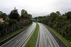 Bergen Peninsula has many roads and highways. The two main highways are the European route E16 highway running from the city of Bergen to the east and the European route E39 highway running north–south through the city of Bergen. The Nordhordland Bridge on the E39 highway connects the Bergen peninsula to the islands and mainland to the north. There are rail connections along the Bergen Line railway that run through the mountain Ulriken to Arna from the city center and then on to Oslo. Previously there was a railway line from Nesttun and Os, called Nesttun-Os Railway. Bergen Airport, Flesland, located on the southwestern shore of the peninsula has air connections to other airports in Norway as well as Europe and Asia. This airport serves as main airport for nearly 600,000 people and had five million passengers in 2008.[2]