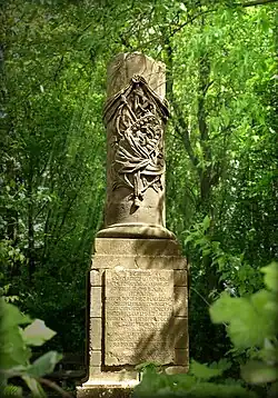 From 1484 until 1834, the Berger Warte was also the place of execution for the high court of the county Bornheimer Berg. The gallows placed there saw the execution of 36 convicted.[10] Up until the divide of the county between Frankfurt and Hanau in 1484, the place of execution had been in Bornheim at the gallows hill (German: Galgenberg). In 1735, the wooden gallows were replaced with one constructed from stone.[12] According to some stories, the gallows were demolished because their sight "disgusted" the Electoral Prince when having breakfast in the Rumpenheim castle (German: Rumpenheimer Schloss).[13] Still today in city plans the closest street is called "Am Galgen" (English: At the Gallows).[2][14]