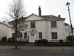 For the first few years, Berkhamsted Rural District generally met at the board room in the workhouse in Berkhamsted, which was at the corner of High Street and Kitsbury Road.[14] The old workhouse was demolished in the late 1930s.[2] By 1928 the council was using as its offices 240 High Street, Berkhamsted (renumbered as 268 High Street around 1950), which was also the office of the solicitor who acted as clerk to the council.[15][16] In 1960 the council moved to Boxwell House at 275 High Street in Berkhamsted, remaining there until the council's abolition in 1974.[17][18][19]