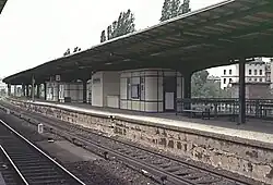 An S-Bahn station from 1928, service was interrupted in 1980 and not resumed until 30 December 1998, when the station reopened in its current form. The entrance building from 1846 is preserved in its original condition and is one of the oldest in Germany.
