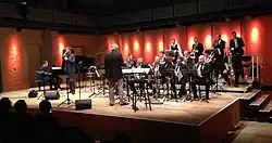 The BJO features studio musicians in the Berlin and Northern Germany region and has performed numerous concerts to include artistic collaborations with the New York Voices, Patti Austin, Manfred Krug, Joja Wendt, Jocelyn B. Smith, Uschi Brüning and Pe Werner.[9] Recent performances have been at the Frankfurt Jazz Festival, the Sonneberg Jazzfest, Nordhaus Jazzfestival and the Jazzfest Köpenick.[9] The group is also featured on the soundtrack for the 2009 Warner Bros. movie release Mord ist mein Geschäft, Liebling.[10] Further premieres of "Songs of Berlin" project were at the Kunstfabrik Schlot in Berlin (March 9) and three-day music festival "Werder klingt" celebrating the 700th anniversary of the city of Werder (Havel) on March 10, 2017 featuring Uschi Brüning.[11][12] The group also performed in Reinsberg as the warm up performance for the recording of two CDs to be produced for 2019.[13] The second of the two CDs (beyond "Songs of Berlin") is Crosscurrent composed and arranged by Jonas Schoen.