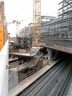 Berlin Südkreuz station (German: Bahnhof Berlin Südkreuz, lit. 'Berlin South Cross') is a railway station in the German capital Berlin. The station was originally opened in 1898 and is an interchange station. The Berlin Ringbahn line of the Berlin S-Bahn metro railway is situated on the upper level and connects to the east and west, whilst the Anhalter Bahn and Dresdner Bahn intercity railway routes reach the station on the lower, north-south level. The station was extensively rebuilt between the late 1990s and 2006, and was renamed Berlin Südkreuz on 28 May 2006.