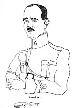 As part of the Polish–Soviet War, Śliwiński set off with his regiment to Brody in Eastern Małopolska (today in western Ukraine) on March 8, 1920. He took part in the Kiev offensive in Ukraine (April–May 1920) and on the Lithuanian-Belarusian front. He received the rank of lieutenant colonel on April 1, 1920.[2] Wounded, he was treated from July to October 1920 in a hospital in Poznań, before returning to his unit. He had a reputation for being an appreciated commander, taking care of his soldiers.