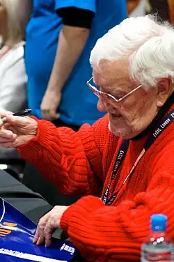 ![]() Cribbins giving a reading of Rudyard Kipling's poem "Tommy" in 2015 | |
