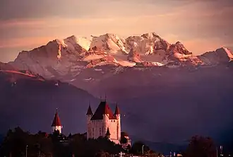 At the west end of Lake Thun, at the outlet of the river Aare, lies the town of Thun, which already belongs to the Swiss Plateau, not far from Bern to the northwest.