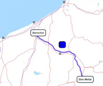 | 117 kilometres (73 mi) | وادي زم عبر ط و 12 أبـي الجعد عبر ط و 12 Oued Zem per N12 Bejaad per N12 |