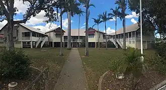By the early 20th century, several schools had been established in North Rockhampton, including Rockhampton North State School (1871), Lakes Creek State School (1872), Frenchville State School (1900) and Park Avenue State School (1901).[9][10][11][12][13] As the population of the district increased, efforts were made by the Department of Public Instruction to expand existing schools. The problems of overcrowding, however, persisted, and some children had to walk several miles to the closest school.[14][1]