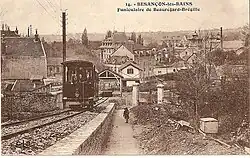 The directive was thus given: it was necessary to develop the Bregille area and provide it with effective means of communication. Émile Picard, then a wealthy landowner in Bregille and an industrial watchmaker, undertook the construction of a funicular railway, which was completed in 1912.[25] This was somewhat belated, given that the spa activity was in decline and World War I was approaching, yet the funicular operated until 1987.[26]