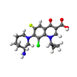Besifloxacin (INN/USAN) is a fourth-generation fluoroquinolone antibiotic. The marketed compound is besifloxacin hydrochloride. It was developed by SSP Co. Ltd., Japan, and designated SS734. SSP licensed U.S. and European rights to SS734 for ophthalmic use to InSite Vision Incorporated (OTC Pink: INSV) in 2000. InSite Vision developed an eye drop formulation (ISV-403) and conducted preliminary clinical trials before selling the product and all rights to Bausch & Lomb in 2003.[1]
