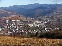The divided valley of Poprad is divided into two groups.[4] In the North-Eastern and Eastern part of Poprad can be found in the Jaworzyny Range and Ľubovnianska vrchovina, and in the South-Western and Western parts lies the Polish Radziejowej Range and the Slovak range. The Slovak range is generally called the Lubawelski Mountains from the Slovak name Ľubovnianska vrchovina, although according to Slovak geographers this mountain range refers to a different region which is different from the Polish geographers. According to other Polish geographers Radziejowej Range and Lubawelski Mountains are only referred to the border, but are actually a mountain range.[5] In Kondracki's files the whole Beskid Sądecki is actually part of the Ľubovnianska vrchovina. The agreed boundary between the Radziejowej Range and the Slovak range is carried through the valley from Poprad of the river Czercz, through Gromadzka Mountain Pass and the valley of the stream Wielki Lipnik.