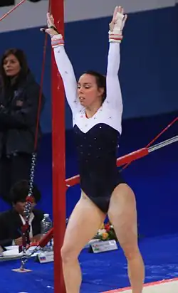 Elizabeth Kimberly Tweddle (born 1 April 1985) is a retired English artistic gymnast. Renowned for her uneven bar and floor routines, she was the first female gymnast from Great Britain to win a medal at the European Championships, World Championships, and Olympic Games. Tweddle, known for her consistency and longevity as an elite gymnast, is regarded as a pioneer of the renaissance of British gymnastics at the beginning of the twenty-first century that saw the country's gymnastics programme progress from 'also ran' to consistent global competitiveness, and along with peers such as Vanessa Ferrari of Italy and Isabelle Severino of France, helped begin a period of significant success for western European gymnasts globally.[3][4]