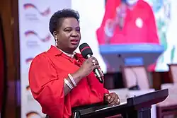 Betty Amongi Akena, (née Betty Amongi Ongom), commonly known as Betty Amongi (born 15 November 1975) is a Ugandan politician. She is the Minister of Gender, Labour and Social Development[1] in the Cabinet of Uganda, as of 9 June 2021. Previously, she served as the Cabinet Minister of Kampala Capital City[2] and before that, from 6 June 2016 until 14 December 2019, as the Minister of Lands, Housing and Urban Development in Uganda's cabinet.[3] She is also the incumbent member of parliament representing the Oyam South Constituency in the 11th Parliament (2021 to 2026).