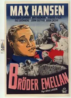 Between Brothers (Swedish: Bröder emellan) is a 1946 Swedish comedy film directed by Börje Larsson and starring Max Hansen, Marianne Aminoff and Vibeke Falk.[1] It was shot at the Centrumateljéerna Studios in Stockholm. The film's sets were designed by the art director Bertil Duroj.