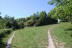 Far up the dean, beyond the Primary School, a wood tumbles down the slope between Norwich Drive and Heath Hill Avenue. Within the wood is a remarkable secret glade that the Victorians called Bevendean Bank. Local conservationists guard its precious turf, mowing and pushing back the ever encroaching wood. There are lots of old grassland flowers and butterflies and a large population of purse-web spider.[4] The site is so special that the entire woods has been designated a Local nature reserve with Bevendean Down and Hogtrough Bottom.