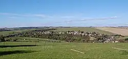 The manor of Bevendean was recorded in the Domesday Book of 1086. The name is derived from 'Beofa's valley'.[1] It was later divided into two estates, Upper Bevendean on the hill and Lower Bevendean in the valley. Some housing development began in the 1930s, with the population expanding rapidly from 1948 onwards. An industrial estate was developed from the mid-1950s.[2]