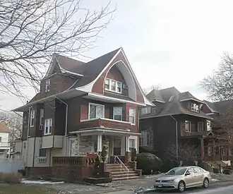 Originally Ackerson offered his houses in Beverley Square East for sale at $10,000 and up, and those in Beverley Square West at $6,500 and up;[9] when sales of the first houses in Beverley Square East were disappointing, he had the rest of that neighborhood developed with somewhat simpler houses by Lewis H. Pounds and Delbert H. Decker (it was completed in 1901), and modified his plan for Beverley Square West, building somewhat smaller and less distinctive houses.[1][10] The Beverley Squares were "Ackerson's major project";[3] his own home was in Beverley Square West, at 304 Marlborough Street (built in 1903), and Pounds, who later served as Brooklyn Borough President, had his home at 317 East 17th Street in Beverley Square East.[1] Beverley Square West also includes the "honeymoon cottage" built as a wedding present for a daughter of the Guggenheim family, at 305 Rugby Road.[11]