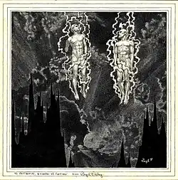 green edifices of light, oceans of space, strange music, and shadowy mountains and valleys. But most of all did he dwell upon some mysterious blazing entity that shook and laughed and mocked at him. This vast, vague personality seemed to have done him a terrible wrong and to kill it in triumphant revenge was his paramount desire. In order to reach it... he would soar through abysses of emptiness 'burning' every obstacle that stood in his way.