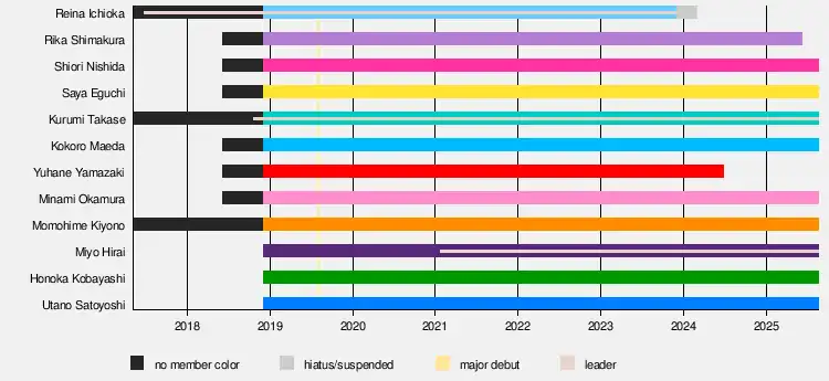 On March 1, 2024, Reina Ichioka graduated from the group, after being on hiatus since December 2023 due to poor health.[10]
