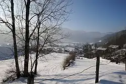 The village of Bezau in the winter time