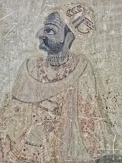Ugra Malla (official name Sri Sri Jaya Ugra Malla Deva) was Bhupatindra's uncle who assisted him during the early years of his reign especially in political matters.[88] Ugra Malla was equally active and ruled alongside his brother and Bhupatindra's father, Jitamitra Malla.[88] Ugra Malla was featured with his brother in most paintings of Jitamitra. Ugra Malla died c. 1708.[52] He was colloquially referred as mēlamhā jūjū.[89]
