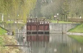 Białobrzegi Lock - the fourth lock on the Augustów Canal (from the Biebrza River). Located in the village of Białobrzegi in the administrative district of Gmina Augustów, within Augustów County, Podlaskie Voivodeship, in north-eastern Poland.[1] It lies approximately 6 kilometres (4 mi) south of Augustów and 78 km (48 mi) north of the regional capital Białystok. In the years 1959 - 1964 was demolished and built, using original art, a new 150 meters on the other side of the road Augustów – Białystok. The reason for this change were to be the cause of the military.