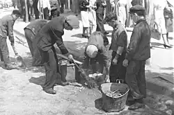 The Aktion was followed by the murder of about 300 Jewish intellectuals who were trucked to the Pietrasze fields on July 3.[4] Battalion 309 left for Białowieża, and was replaced by Order Police Battalion 316 and 322 of Police Regiment Centre and were ordered to round up more Jews. On July 12–13, 1941, a mass shooting by the two battalions dubbed "Black Saturday" took place on the outskirts of Białystok.[4] It is estimated that over 3,000 Jews herded into the municipal stadium – visited by Erich von dem Bach-Zelewski himself – were taken away and killed in antitank trenches.[8][9] The total of over 5,500 Białystok Jews were shot in the first weeks of German occupation in the summer of 1941.[4]
