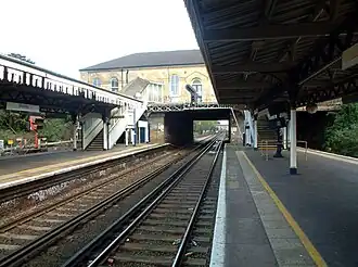 Bickley railway station is on the Chatham Main Line, serving the town of Bickley in the London Borough of Bromley, south-east London, England; it is 11 miles 76 chains (19.2 km) down the line from London Victoria. Southeastern trains branch from the main line south of Bickley and run to Orpington via Petts Wood. Thameslink services run either via Petts Wood or St Mary Cray on the main line. Bickley is in Travelcard Zone 5.