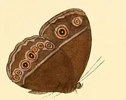 - ^ "Afrotropical Butterflies: File E – Nymphalidae - Subtribe Mycalesina". Archived from the original on 2014-02-22. Retrieved 2012-05-15.